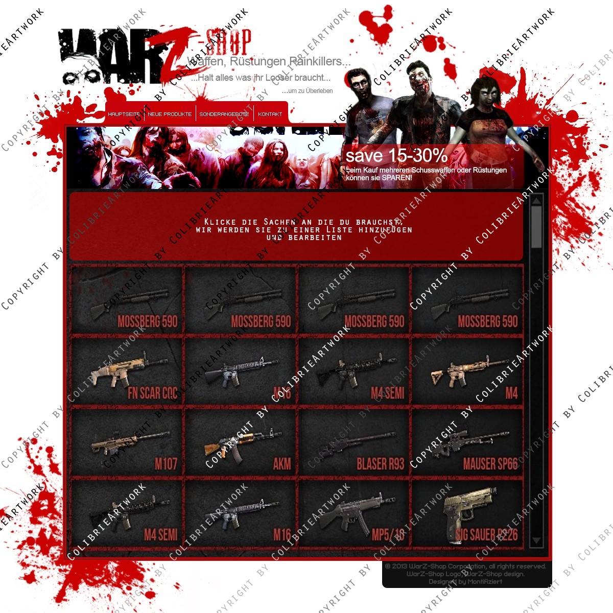 Es handelt sich hierbei um ein WarZshop Website die man aber auch gerne als Community Website für ggf. Survival oder Zombiegames verwenden kann. Für einen kleinen Preisaufschlag kann ich euch das komplette Design noch euren Wünschen anpassen.
