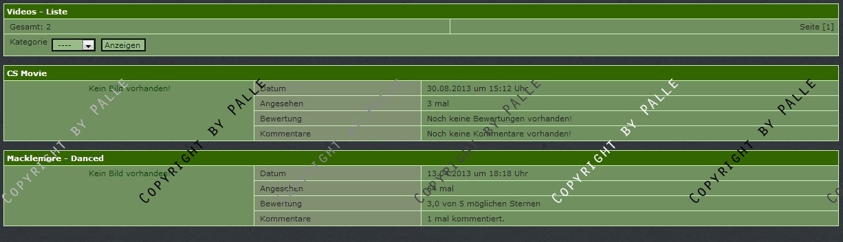 Es werden 3 Navlisten mitgeliefert (letzten X anzeigen, ein random video sowie das neuste video können ausgegeben werden).