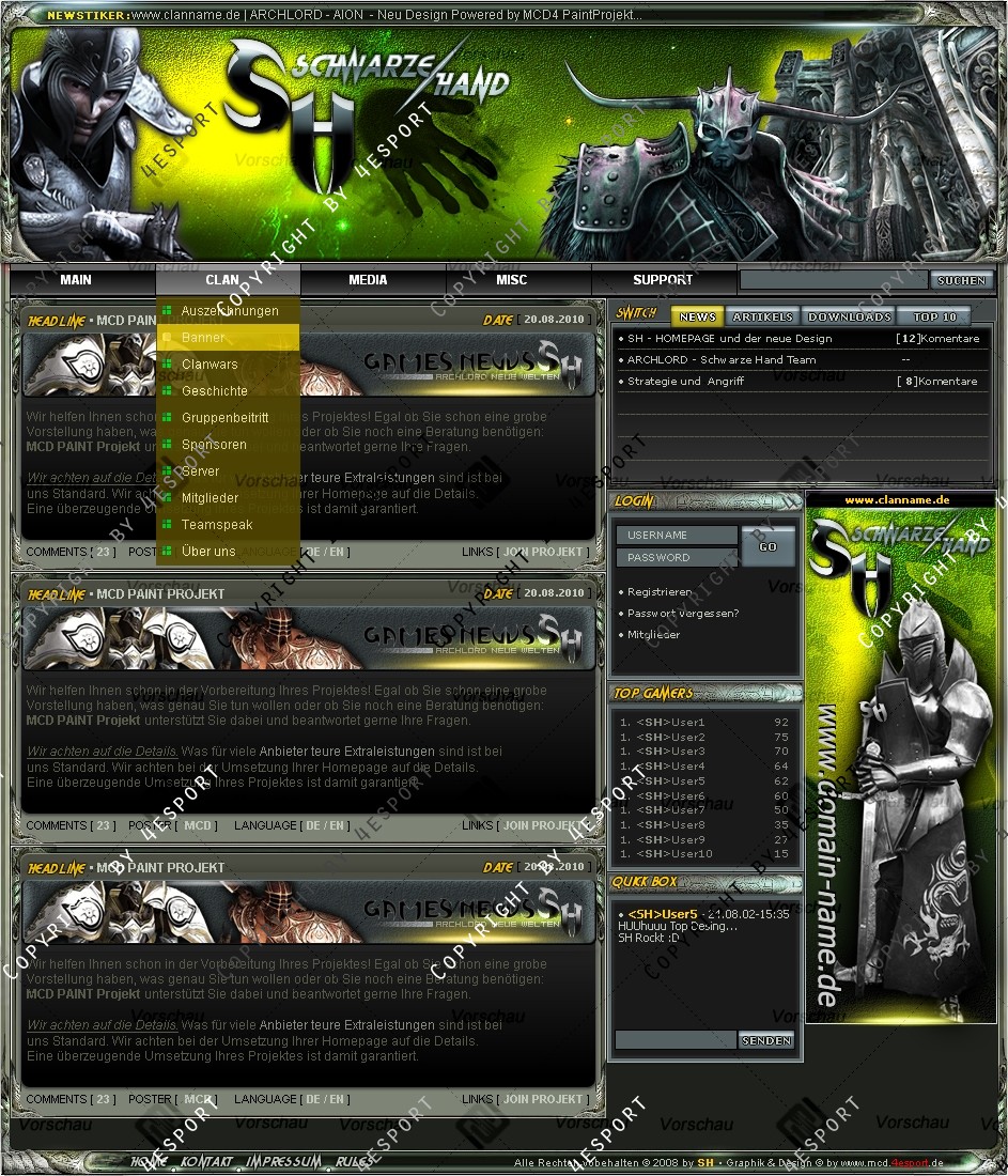 Wir können auch Ihre EXKLUSIVE Farbanpassung anfertigen bzw.: Neue LOGO CLAN NAME, Rahmen, Boxen Hintergründe, Titel-Fonts, Verlauf-Farben, Boxen Anordnung, usw....  das alles ist nur in EXKLUSIVE PREIS enthalten.